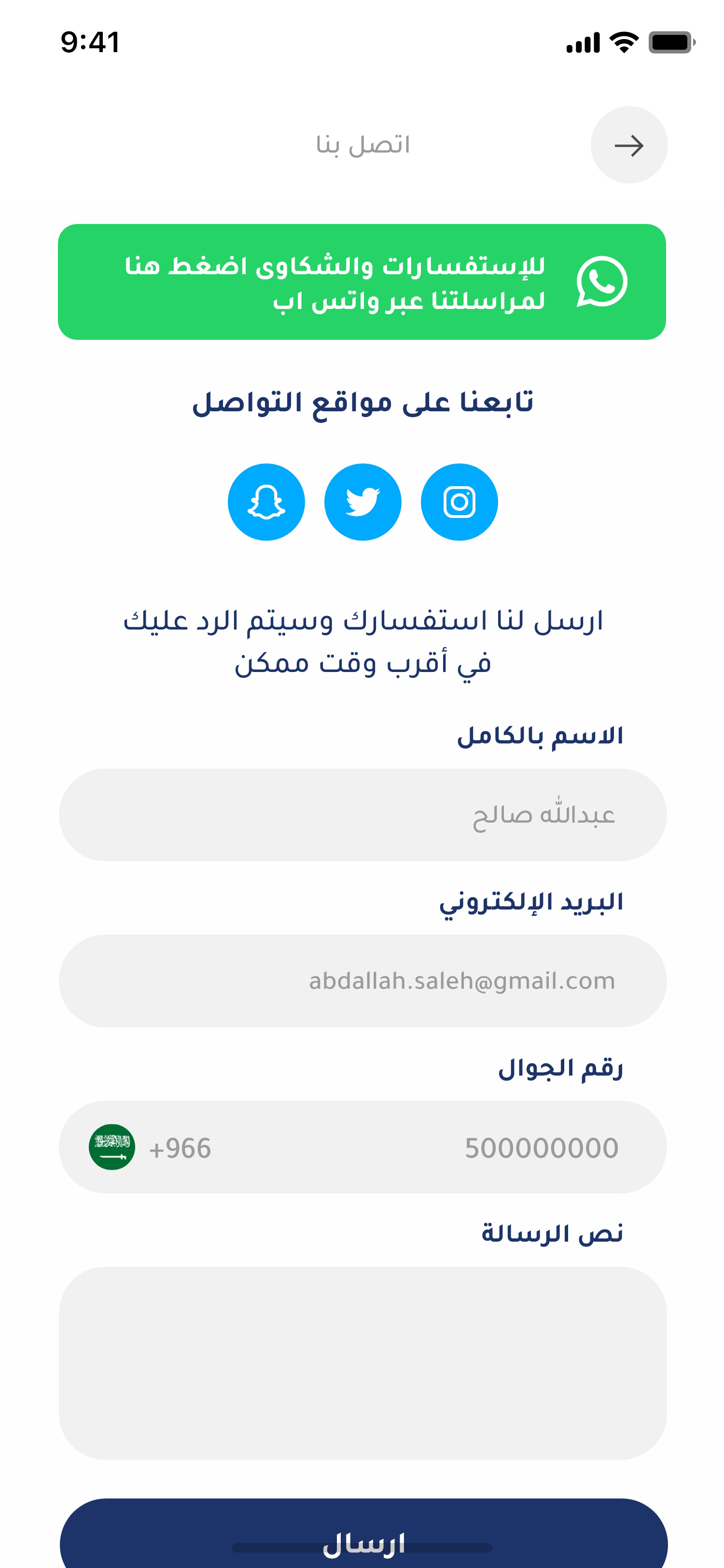 ارسل رسالتك عبر نموذج التواصل التالي وسيتم الرد عليك في أقرب وقت ممكن